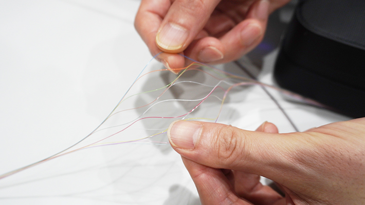 - 間欠固定テープ心線は専用工具を用いることなく単心分離が可能です。