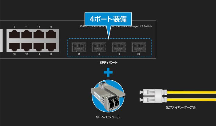 光ファイバー用の10G SFP+スロットを4基搭載。