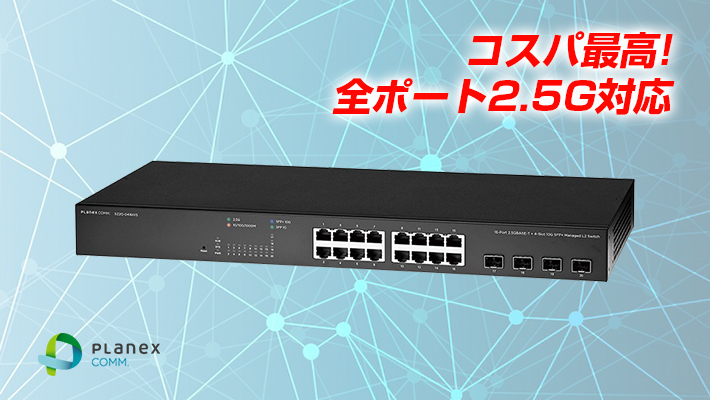 16ポートすべてが2.5GBASE-Tに対応しており、既存のCat5eケーブルでも最大2.5Gbpsで通信でき、配線をそのまま活かしてネットワークの高速化を実現します。