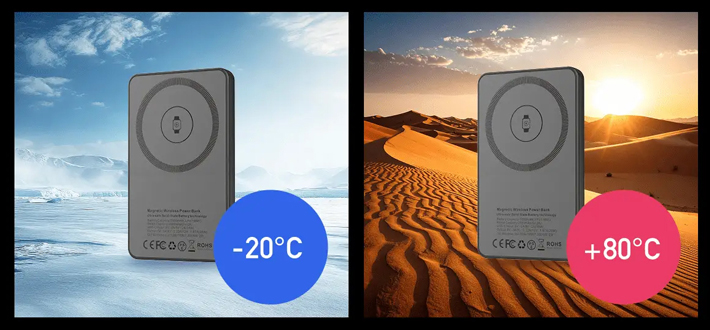 極寒の-20°Cでも灼熱の80°Cでも充電可能です。約2,000回可能と約4倍の充放電サイクルを実現しました。