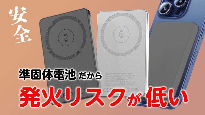 発火リスクが低い準固体電池を使用したモバイルバッテリーを取扱っております。